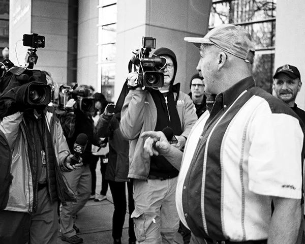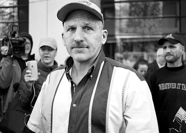 "I'm headed home to go ride my pony for a couple months," Duane Ehmer told reporters outside the federal courthouse March 10, 2017. Ehmer was acquitted of conspiracy but convicted on a lesser charge. OPB